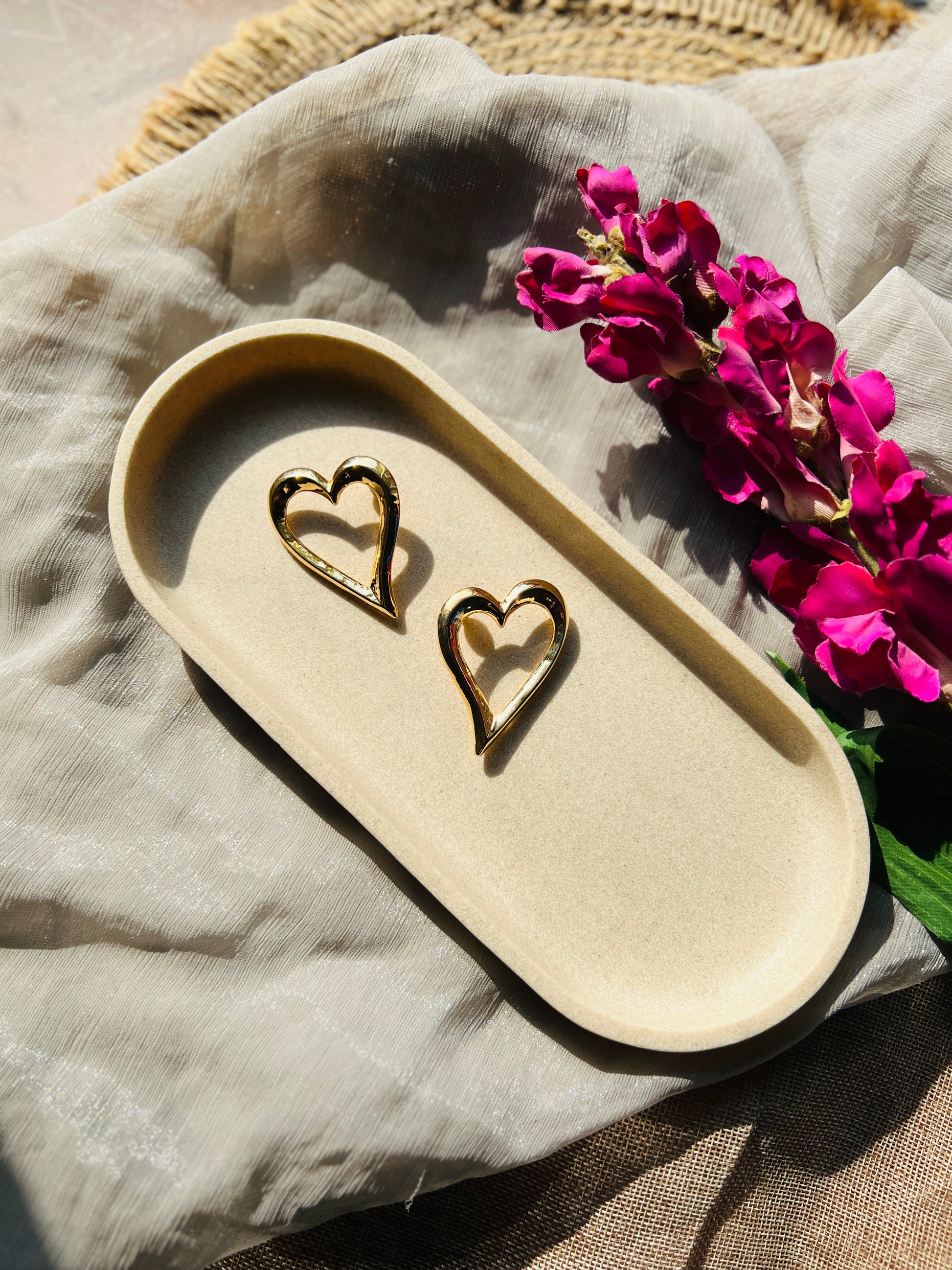These minimal yet expressive earrings feature a sleek open-heart silhouette crafted in a polished gold-toned finish. The softly contoured heart design reflects light beautifully, symbolising warmth, affection, and effortless elegance. Lightweight and timeless, these studs are perfect for everyday wear, gifting, or adding a subtle romantic touch to both casual and dressy looks. A refined classic that never goes out of style.
