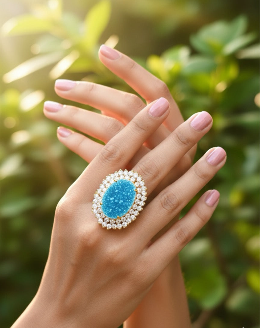 Add a touch of vibrant elegance to your look with our stunning Druzy Stone Finger Rings! Crafted to perfection, these rings feature adjustable sizing, ensuring a comfortable fit for everyone. The natural sparkle of Druzy stones, enriched with delicate pearls, creates a statement piece that exudes charm and sophistication.