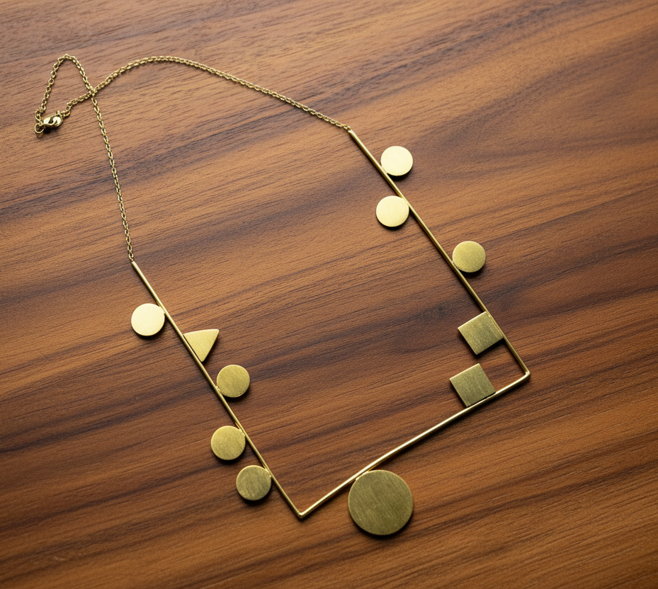 A bold yet minimalistic statement, the GeoFrame Neckpiece redefines modern jewelry with its artistic balance of circles and squares. The gold-plated geometric frame sits beautifully on any outfit, blending structure with elegance. Perfect for those who love their style clean, confident, and contemporary.