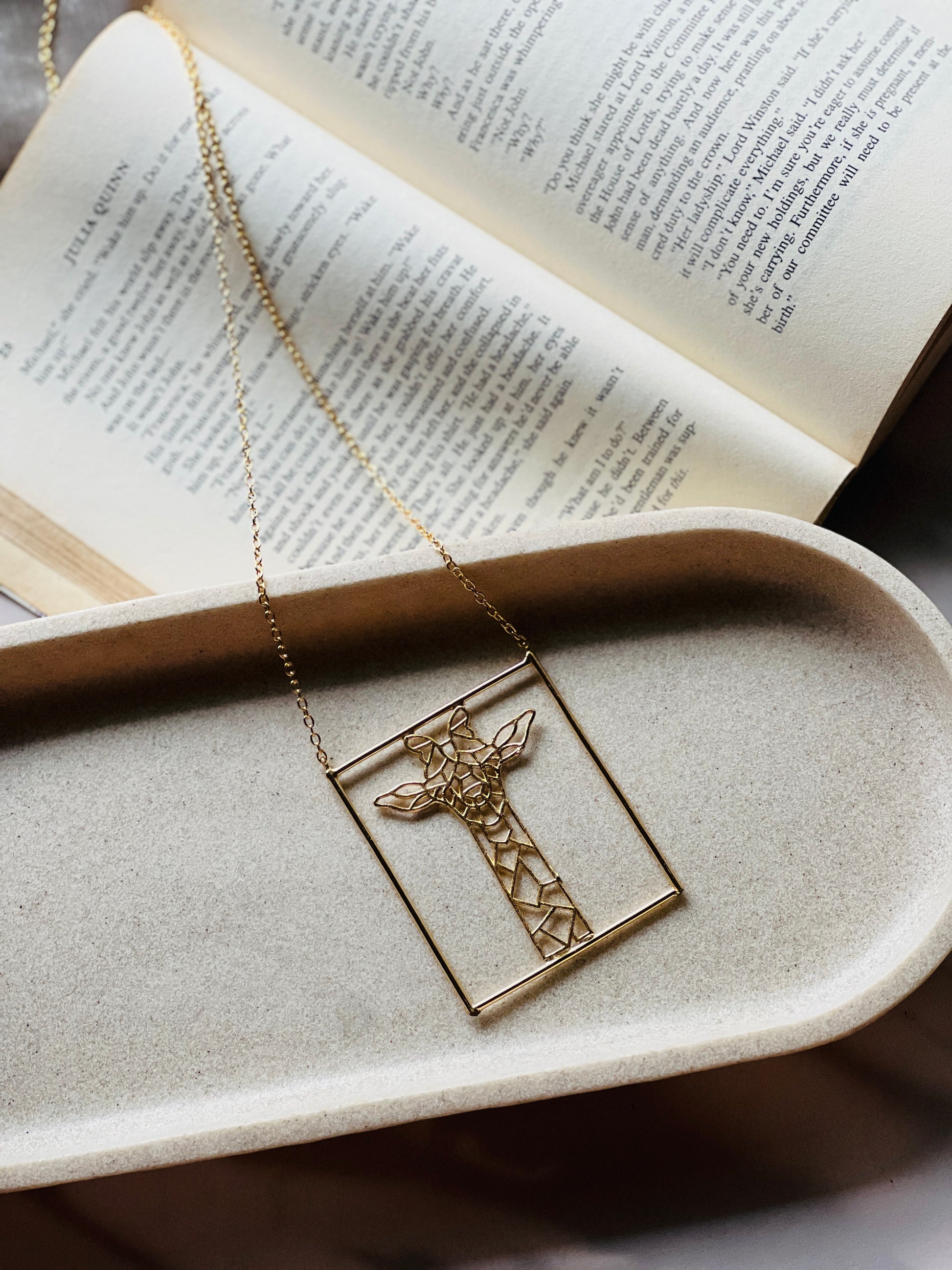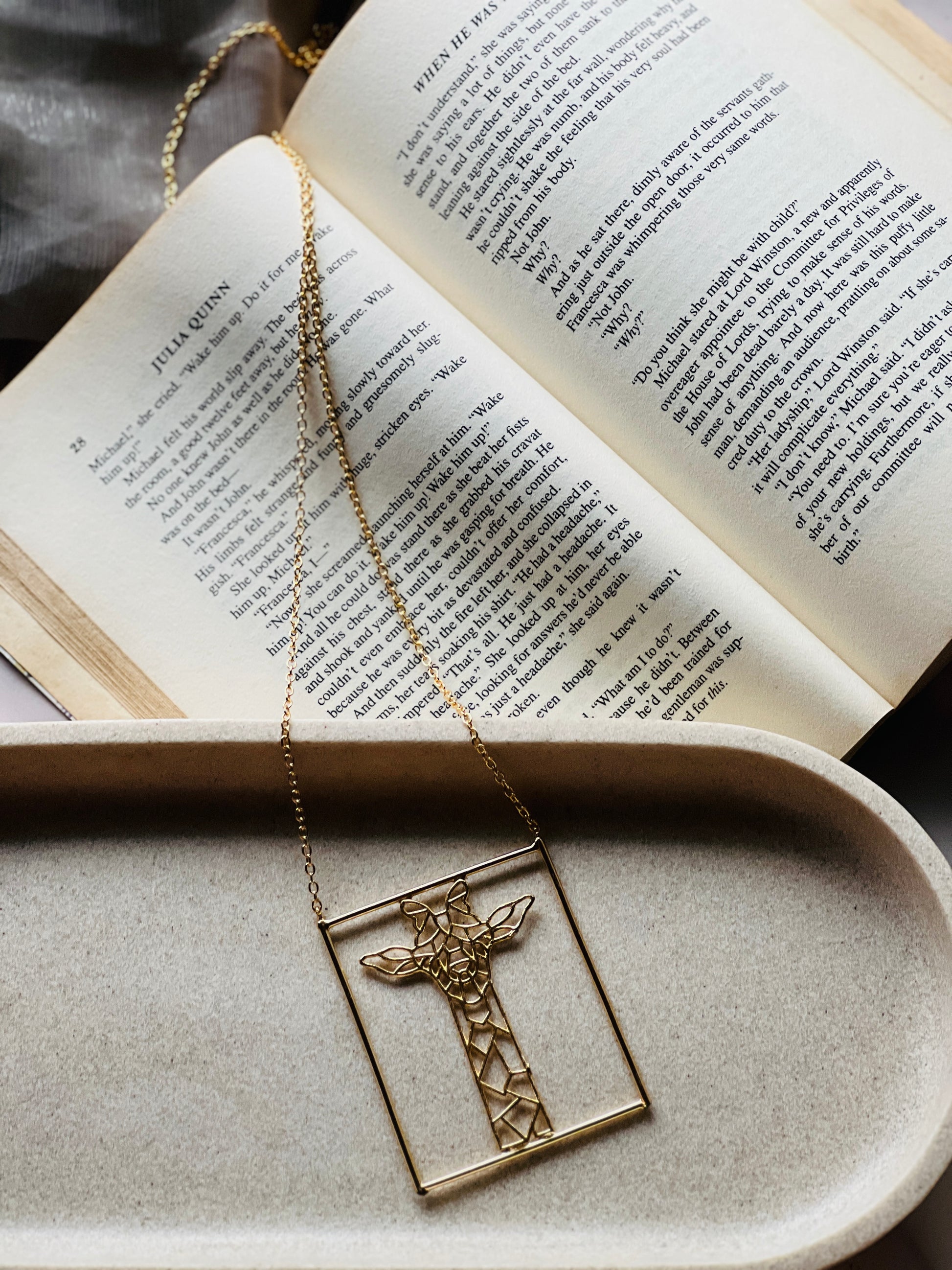 A striking contemporary-style giraffe pendant, beautifully crafted in a sleek gold-plated finish. Its elegant long-neck design symbolizes grace, strength, and uniqueness—making it a perfect statement piece for modern styling. Paired with a chic long chain, this pendant adds a stylish touch to any outfit, blending playfulness with sophistication.