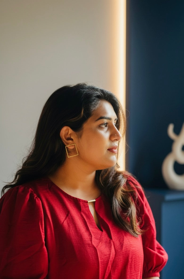 The Lustra Square Studs embody modern sophistication with their bold, square-like design and luxurious matte gold-plated finish. A perfect fusion of minimalism and statement style, these earrings add a refined edge to any contemporary look. Crafted for versatility, they seamlessly complement structured silhouettes, chic casuals, and evening ensembles alike. Elevate your style effortlessly with this fashion-forward yet timeless piece