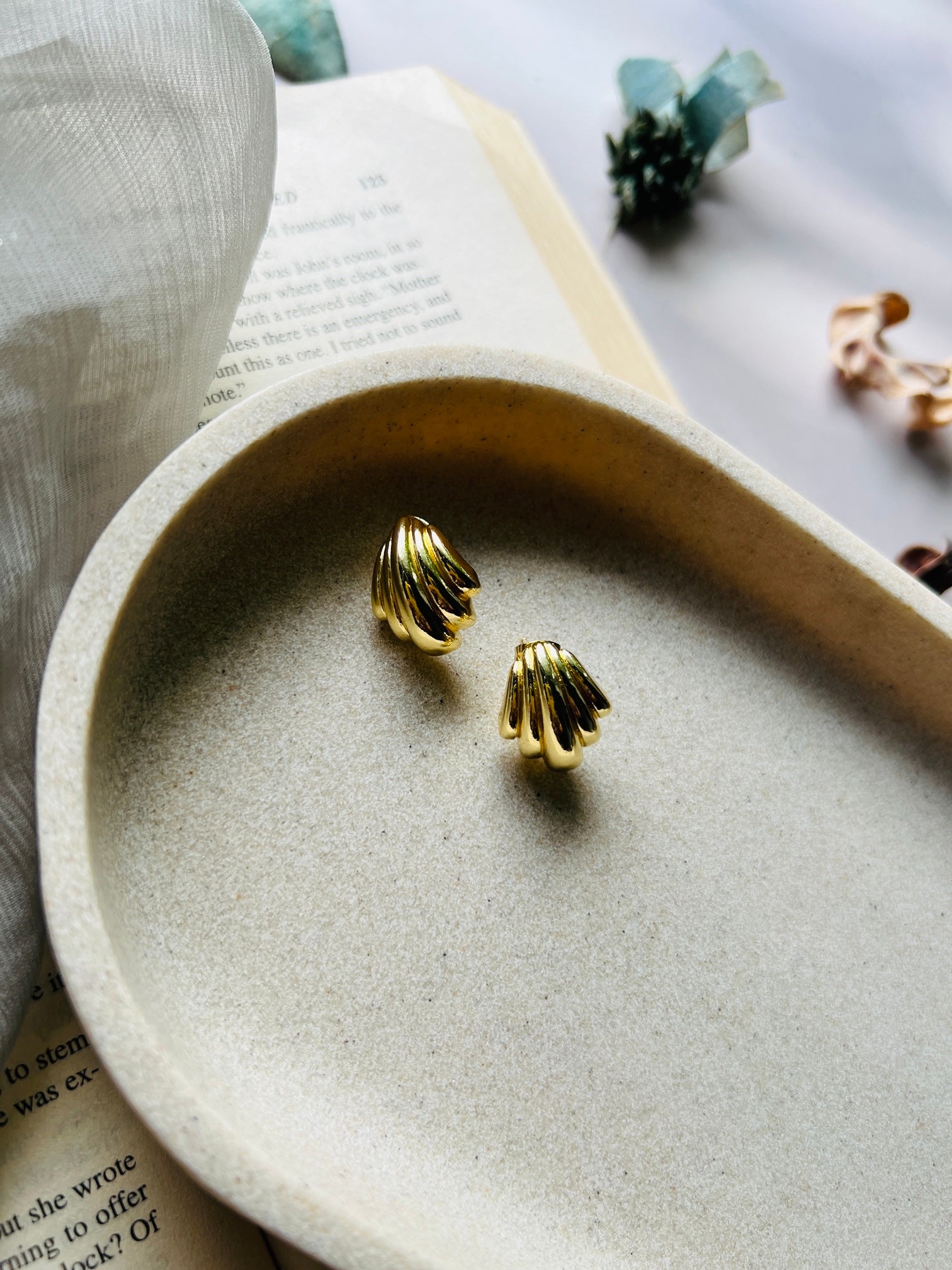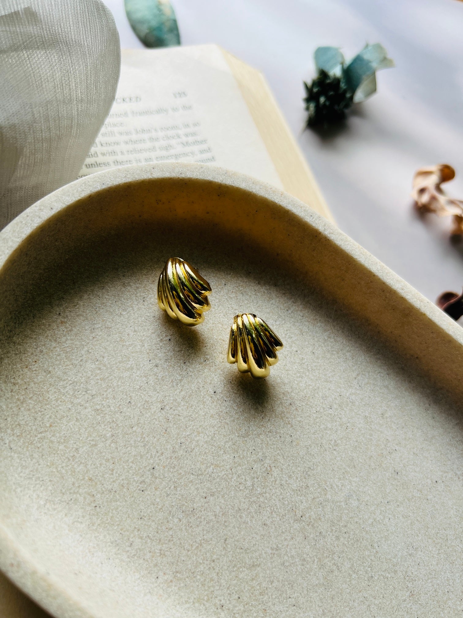 A chic and modern pair of stud earrings, designed with a sleek stylish pattern and finished in luxurious high-quality gold plating. These studs are crafted to last, offering both durability and a radiant glow. Their contemporary design makes them versatile enough to complement everyday wear while adding a touch of elegance to special occasions. A must-have piece to complete a polished, stylish look.