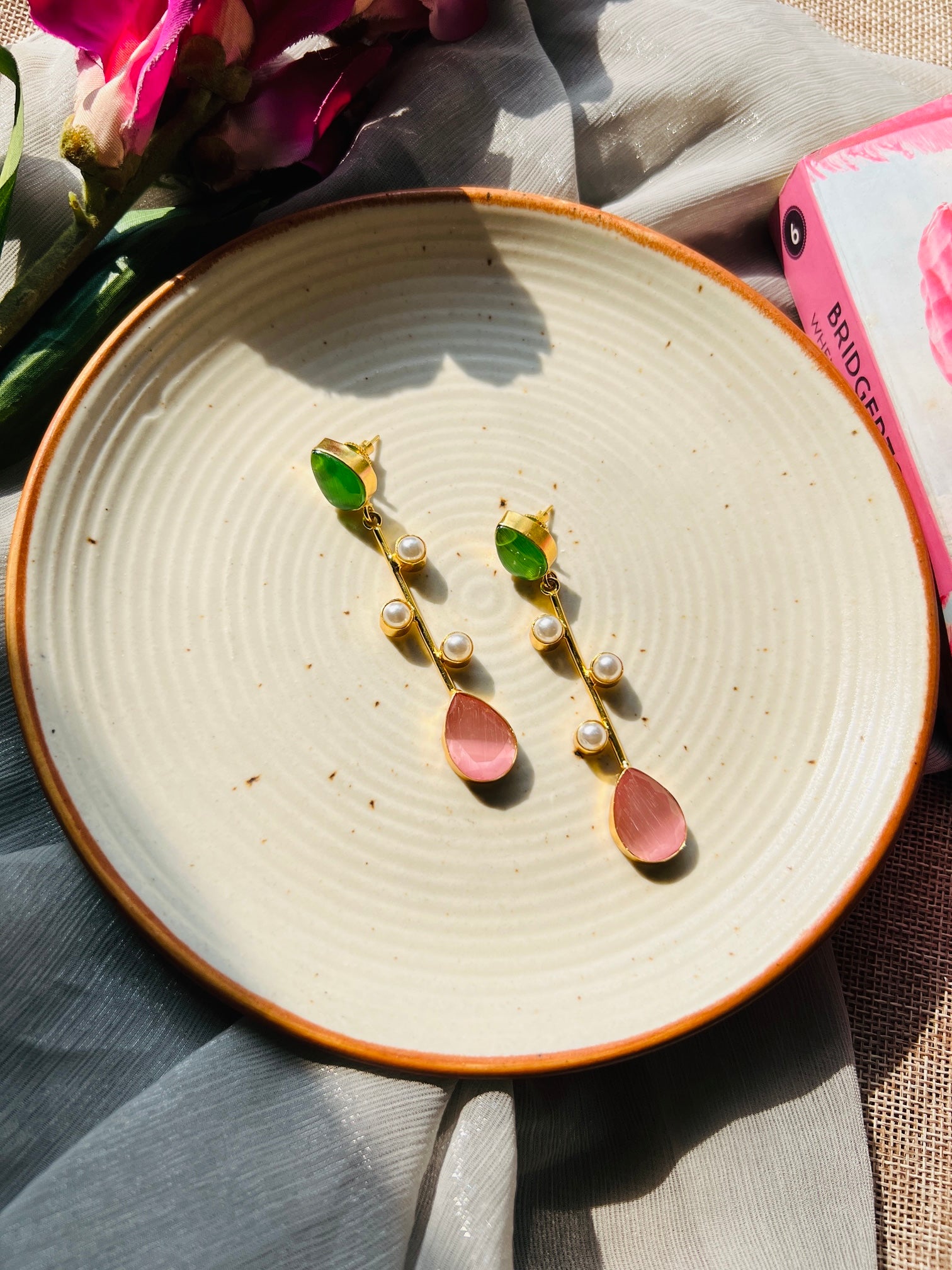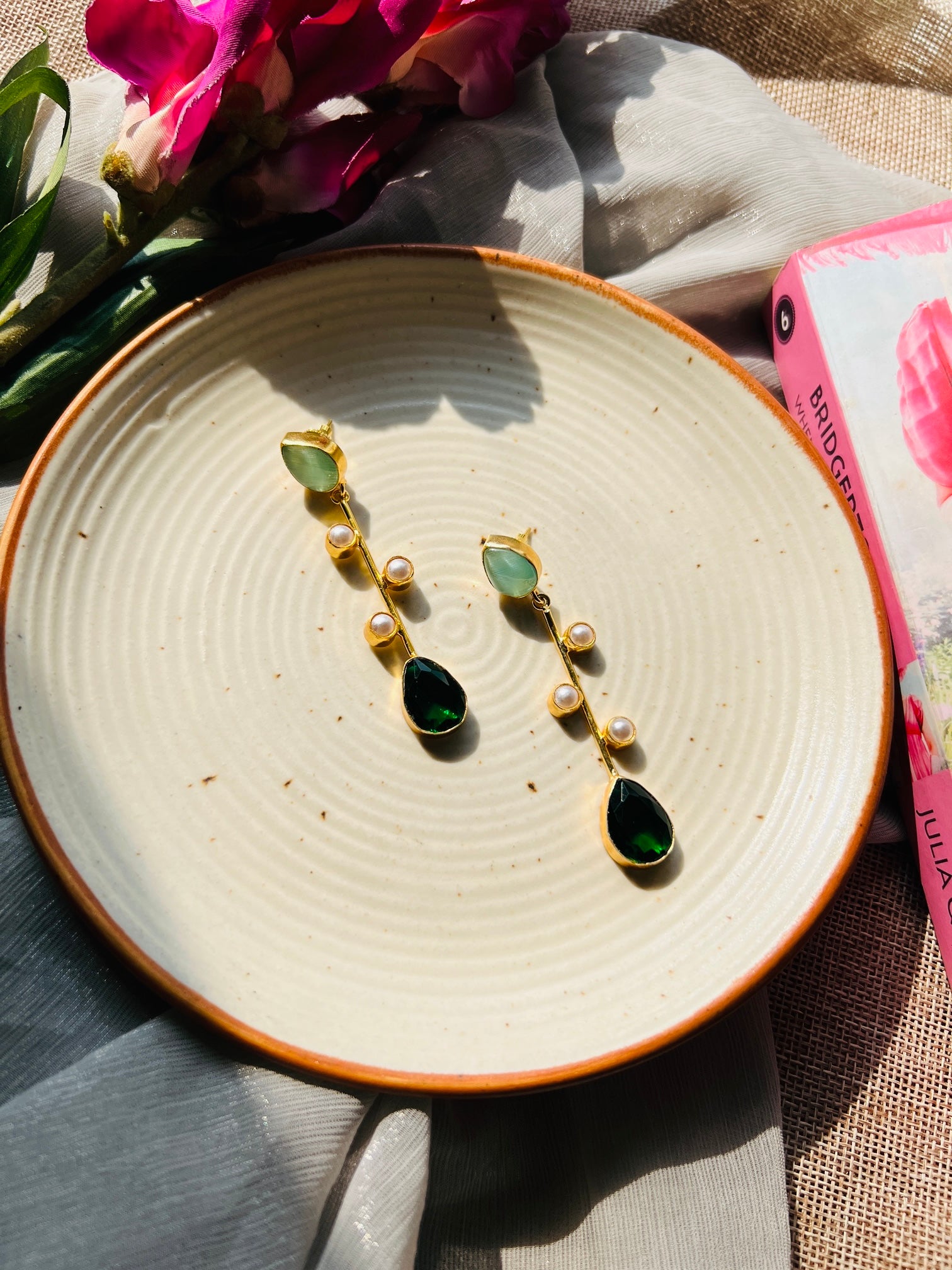 Inspired by moonlit elegance, the MoonAura Luxe Long Earrings fuse delicate pearls, high-shine stones, luminous glass stones, and a beautiful MOP centerpiece.