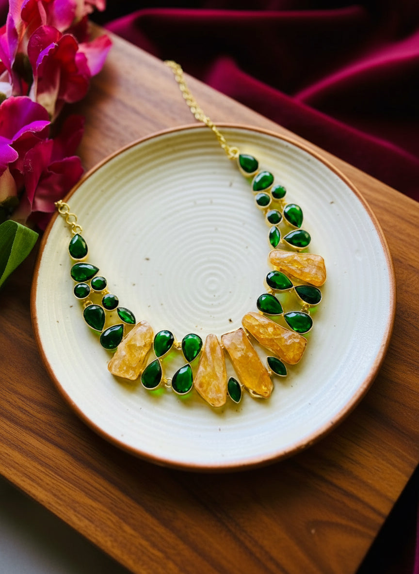 Make a bold and beautiful statement with the Ophelia U-Charm Necklace Set — a stunning fusion of natural stones and sparkling glass stones arranged in an elegant U-pattern design. Every stone shines with its own character, creating a rich and eye-catching look.