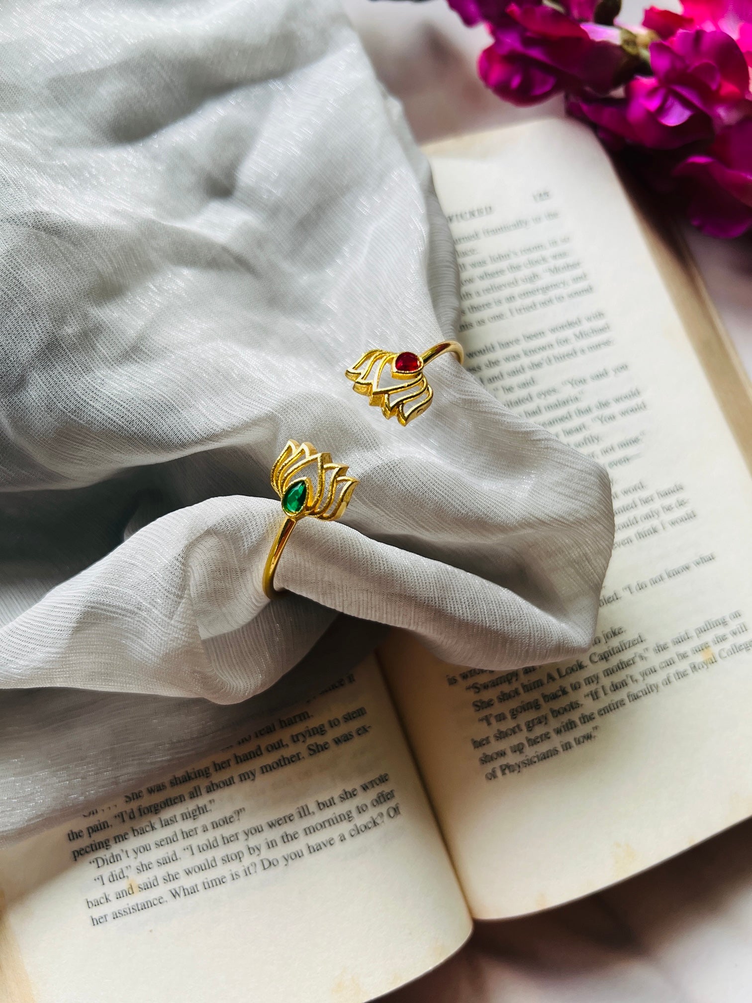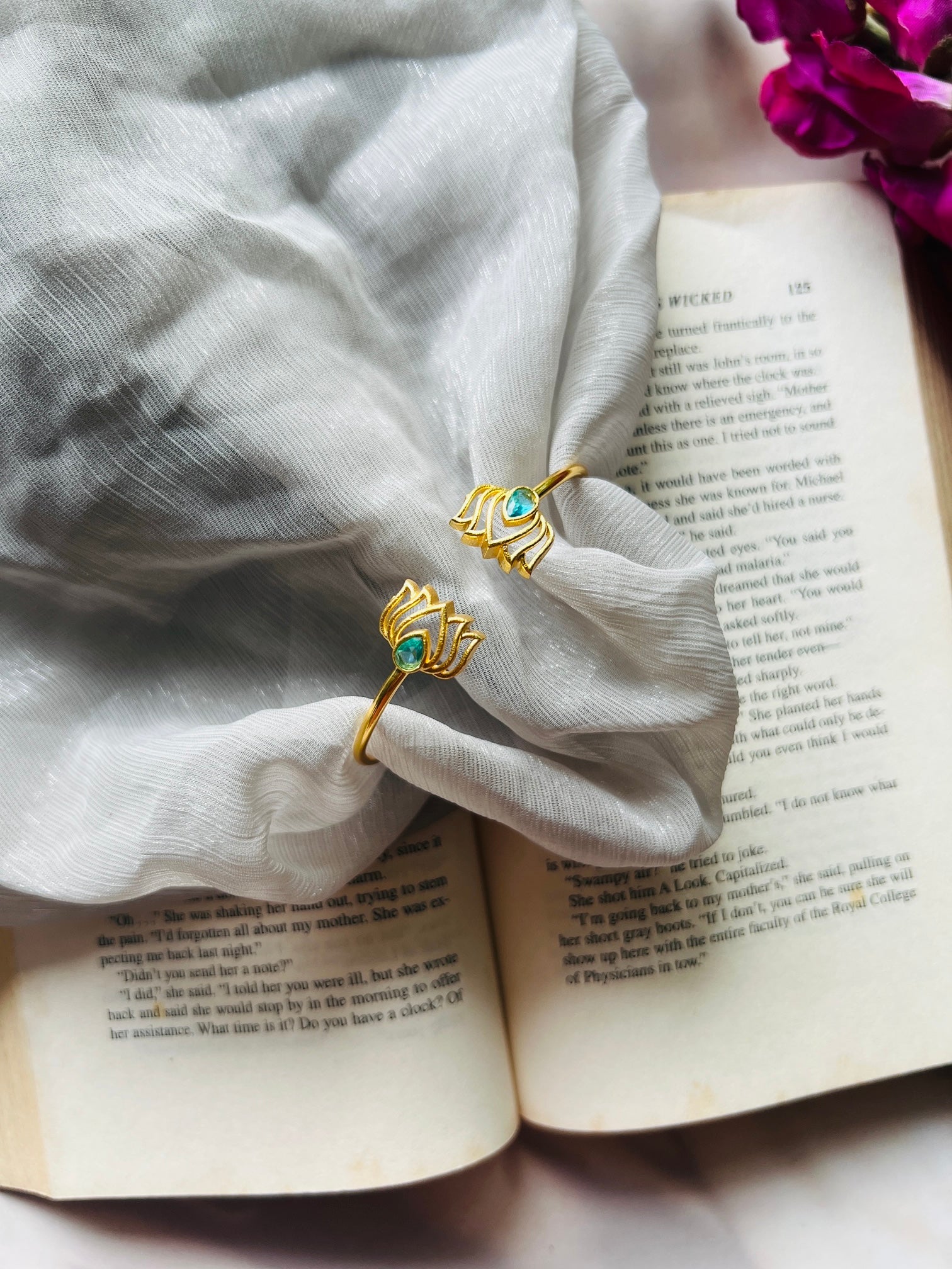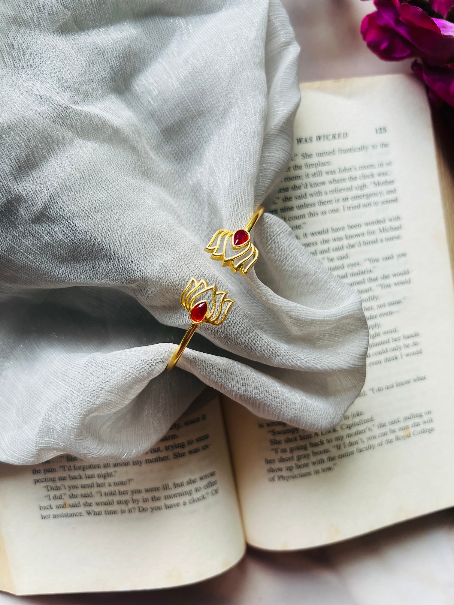 A masterpiece of traditional elegance, this adjustable gold-plated bangle showcases a dual lotus design, symbolizing beauty, purity, and prosperity. Crafted with intricate detailing and a radiant finish, it complements both festive ensembles and everyday ethnic looks, making it a timeless treasure in your collection.