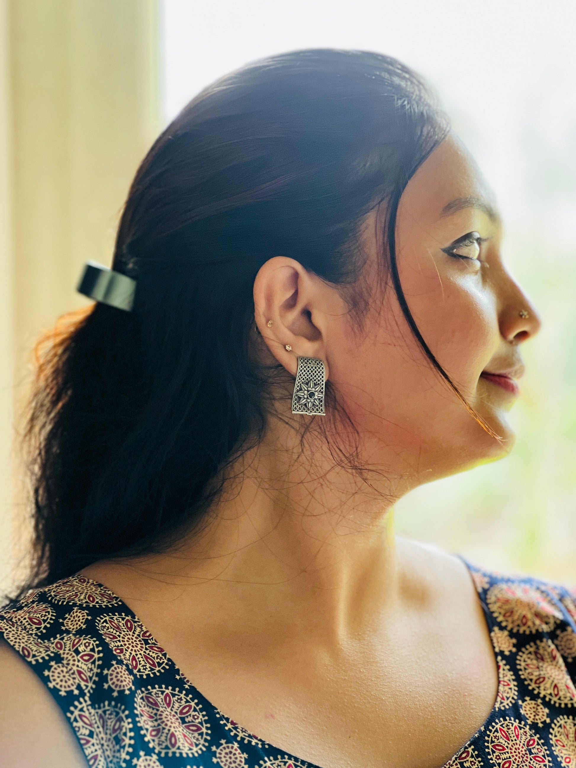 The Pushpmani Studs blend antique charm with timeless elegance. Crafted in antique silver polish, these floral-inspired studs feature a delicate stone at their center, symbolizing grace and sophistication. The intricate petal detailing adds a touch of vintage beauty, making them perfect for both traditional and contemporary looks. A subtle yet stunning piece to elevate any jewelry collection.