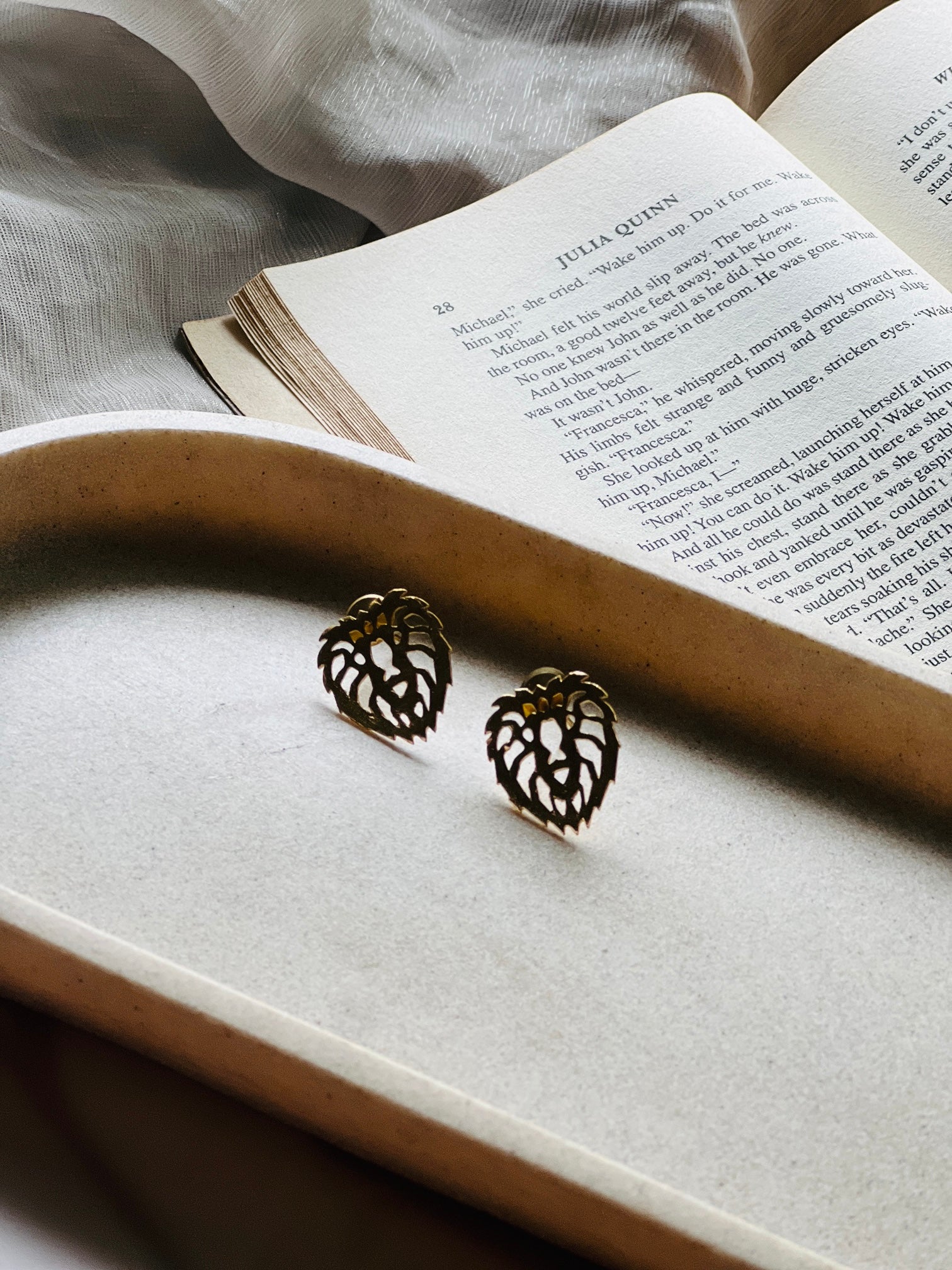 A striking lion-pattern stud earring that captures the essence of power and elegance. Expertly handmade with fine detailing, this piece reflects the artistry and effort of our skilled craftsmen. The high-quality gold plating gives it a rich, luxurious shine, while its contemporary styling makes it a bold yet versatile choice. A truly majestic accessory for those who love to wear their confidence with style.