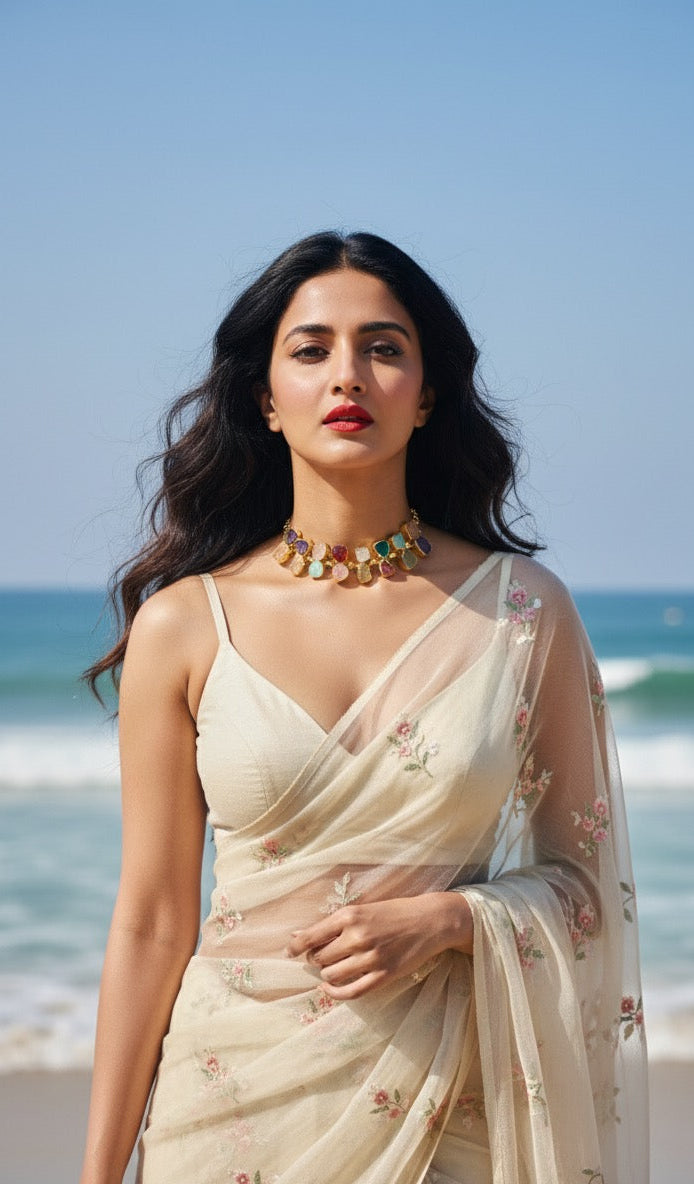 Embrace the charm of divine elegance with the Seraphine Prism Choker Set — a mesmerizing blend of multicolored natural stones, each stone reflecting a unique shade of beauty. Designed in two graceful layers, the choker sits flawlessly on the neckline, adding a touch of brilliance from every angle.