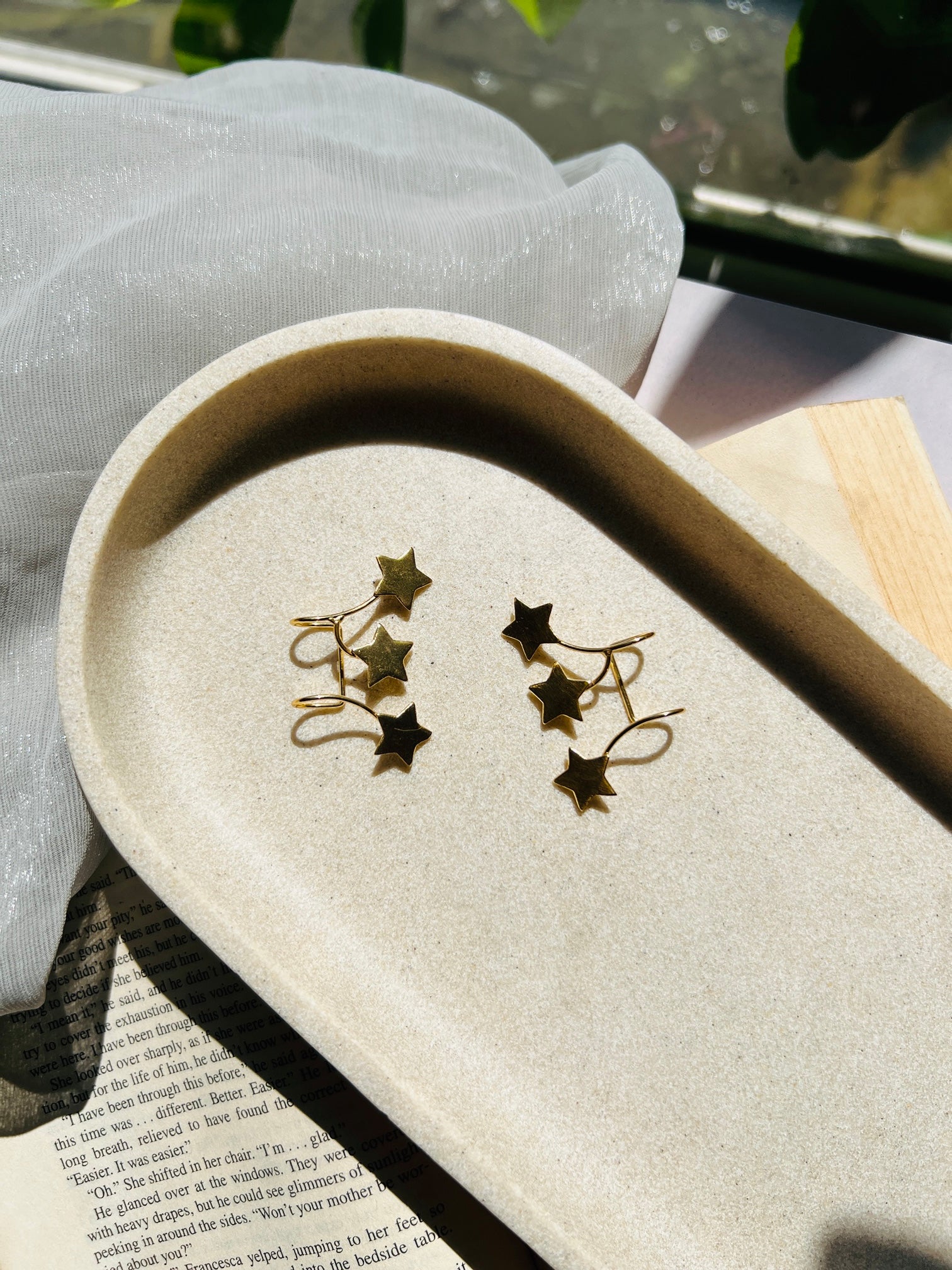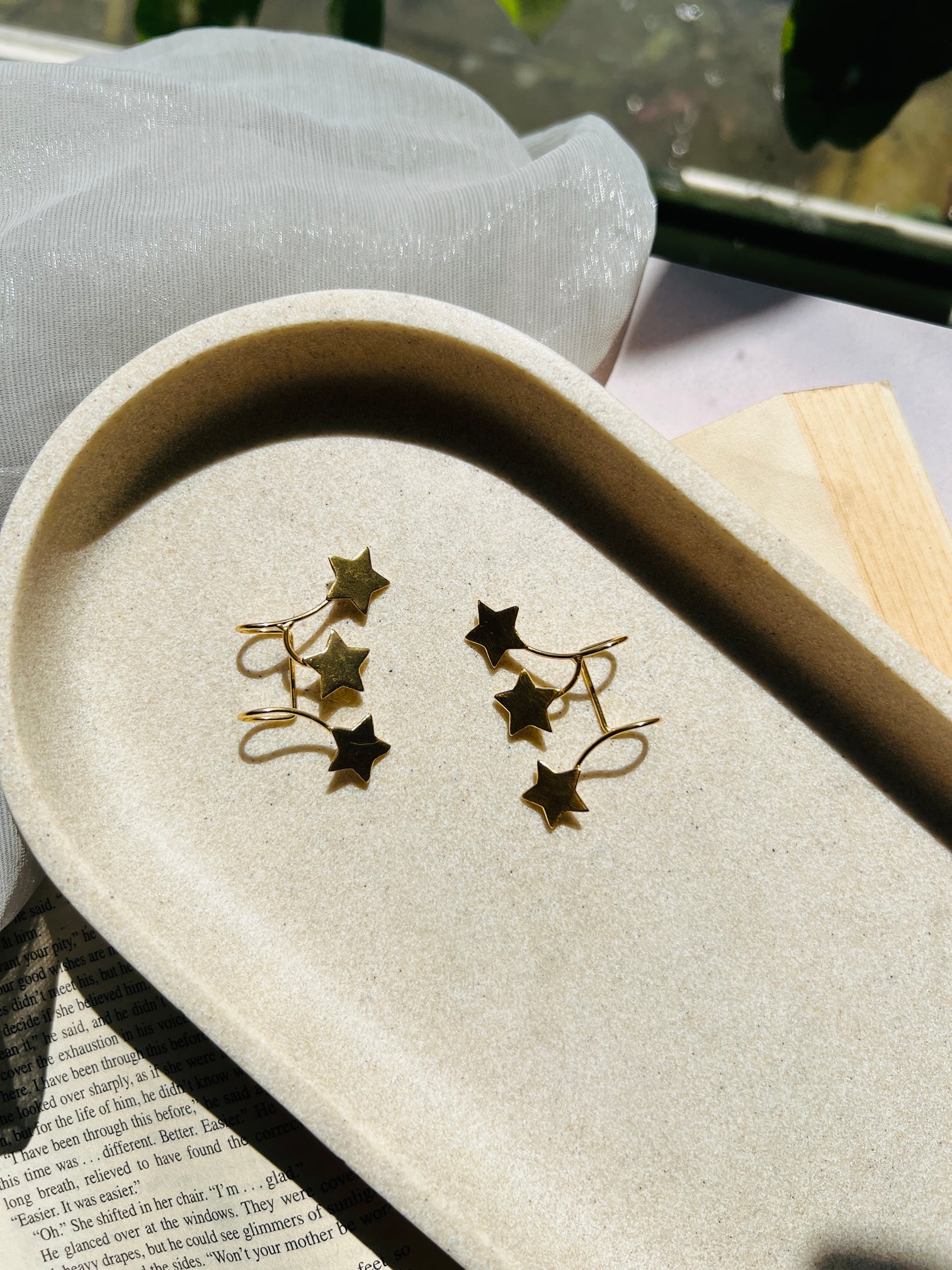 A dazzling pair of gold-plated ear cuffs designed in a chic star pattern. These pressing-style cuffs can be comfortably worn on any part of the ear, adding a playful yet elegant touch to your look. Lightweight, versatile, and trendy, they’re perfect for creating a statement without the need for piercings. A contemporary must-have for starry souls who love to shine.