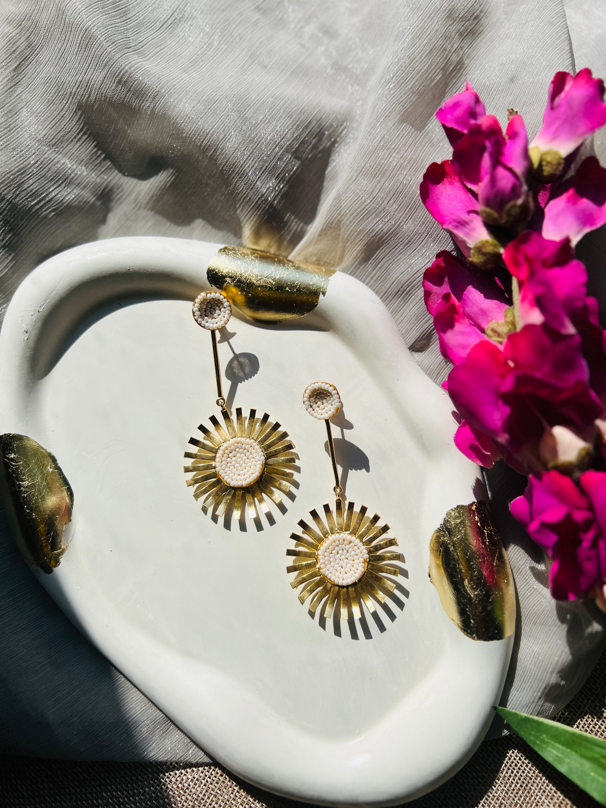 Lightweight yet eye-catching, these earrings balance softness and structure effortlessly. Perfect for daytime festivities, elegant brunches, or festive celebrations, they add a graceful glow to both ethnic and contemporary looks. A timeless statement that feels radiant, feminine, and handcrafted with care.