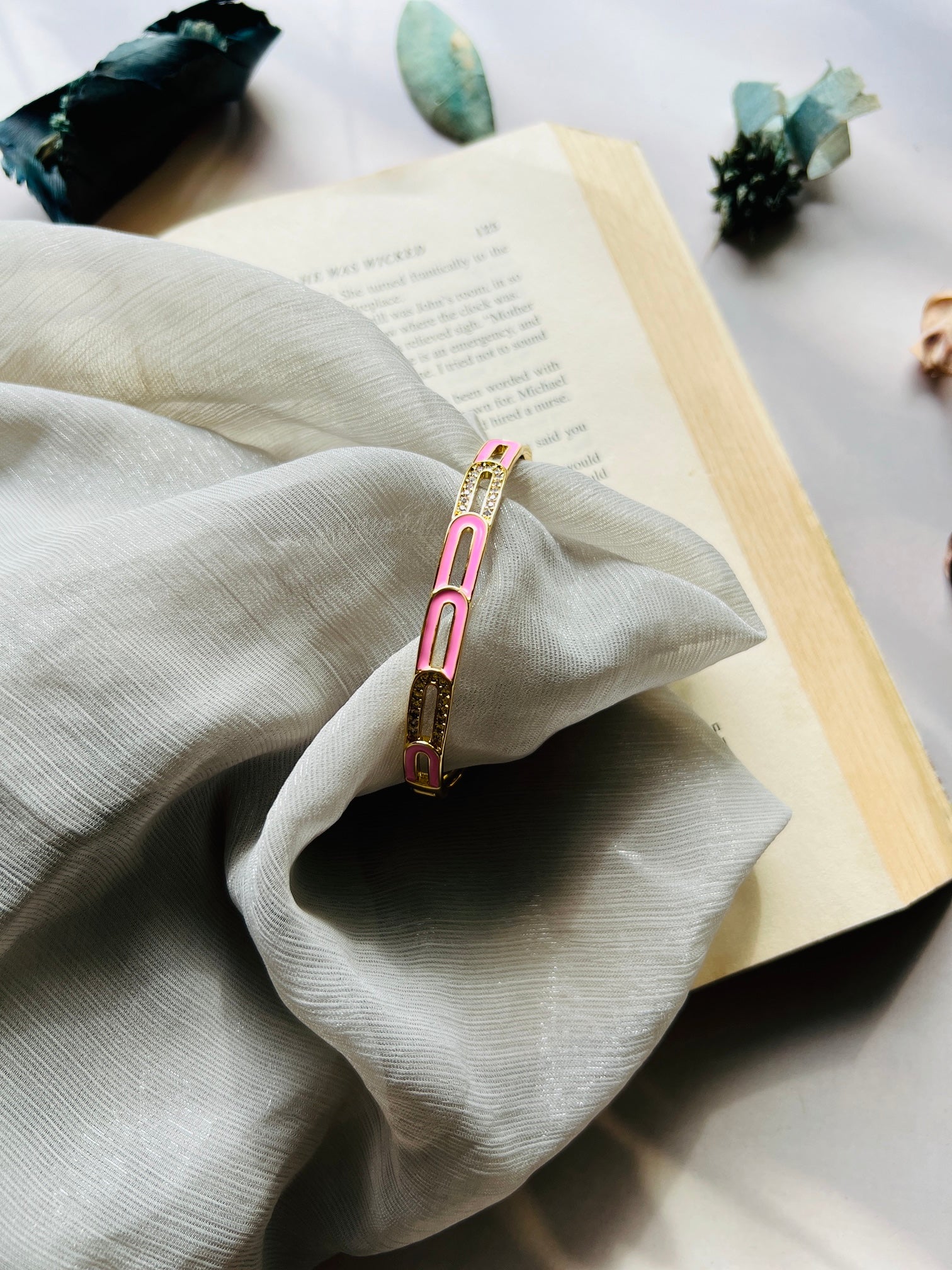 Add a pop of elegance and color with our Twilight Glow Bangles. Designed in a perfect blend of style and sparkle, these bangles come in two stunning shades — a soft rosy hue and a vibrant fluorescent green. Accented with delicate white stones, they bring just the right mix of charm and shine. Lightweight, stylish, and versatile, this pair is perfect for both festive occasions and everyday glam.
